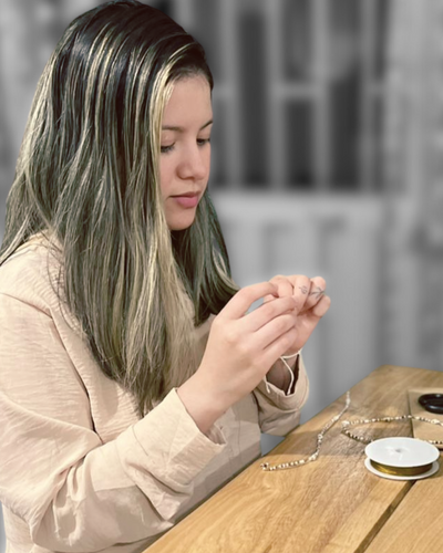 Every Luca Love piece is handcrafted in Medellín by talented women artisans who bring skill, pride, and artistry to every design. Working from home with the tools and materials they need, they create small batches of jewelry that are as beautiful as they are meaningful.