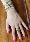 En honor a nuestra tierra querida, esta pieza es más que una pulsera; es un símbolo de orgullo, amor y conexión. Esta pulsera artesanal estilo macramé está elaborada en oro laminado de 18k, garantizando calidad y durabilidad. Hace un regalo perfecto con mucho significado.